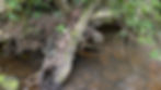 Balsam growing amongst leaf and mud debris caught on exposed tree roots